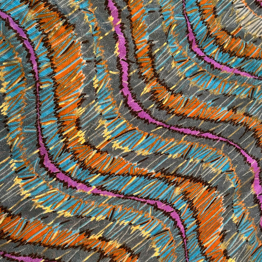 - Neon Geometric Details: The side features a striking, hand-embroidered multi-color chevron design that adds a modern, artistic pop to the classic silhouette.