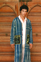 Inspired by the ancient and magical art of indigo dyeing, this duster is a tribute to the deep, soulful blue of the desert at twilight. It evokes the patterns of clouds drifting in a vast sky, or the dream-like streets of Chefchaouen. Handcrafted in Morocco, each piece is individually dyed, creating a unique, watery pattern that makes every duster a one-of-a-kind work of art. It’s a garment for the dreamer, the artist, and the wanderer.