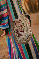 - Heavy Artisanal Blanket Weave: Crafted from a thick, rustic textile with a wonderfully tactile, hand-loomed feel, featuring a rainbow of vibrant, sun-drenched vertical stripes.