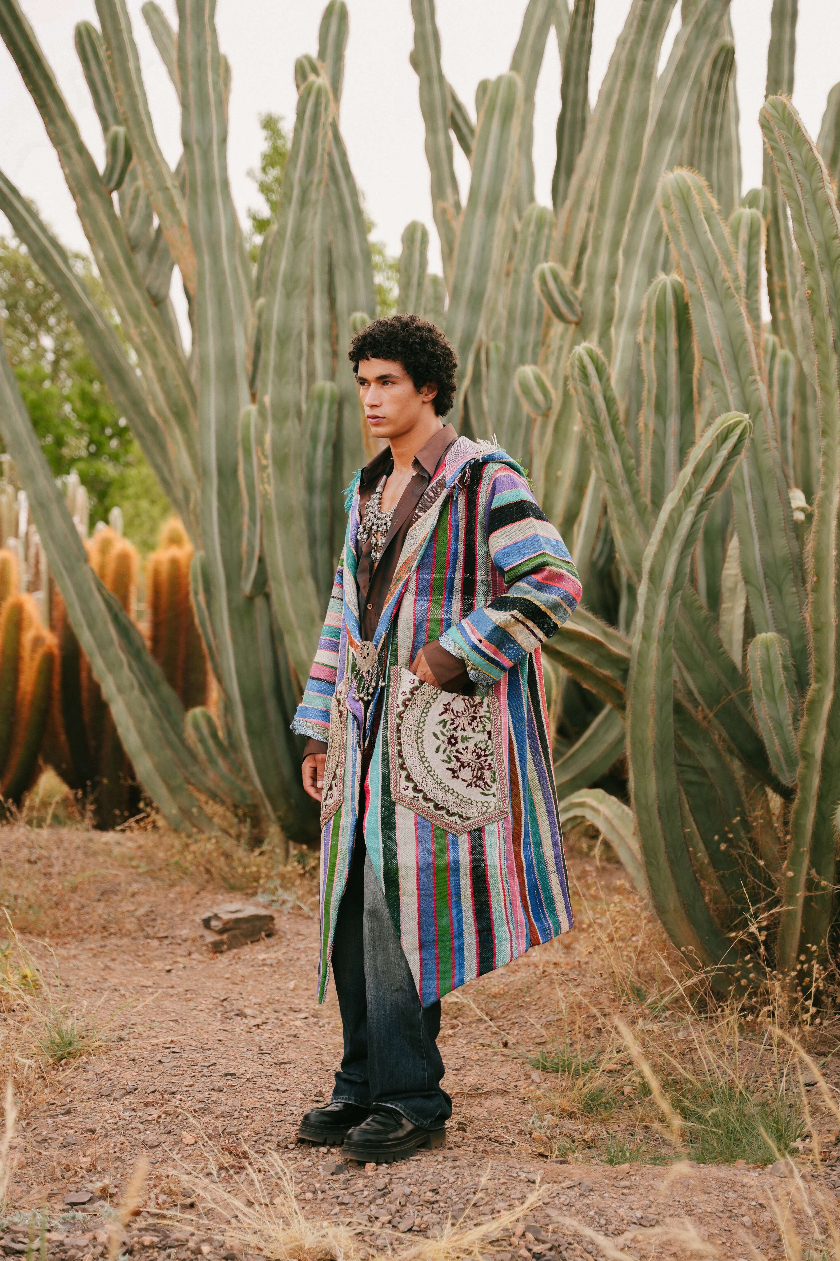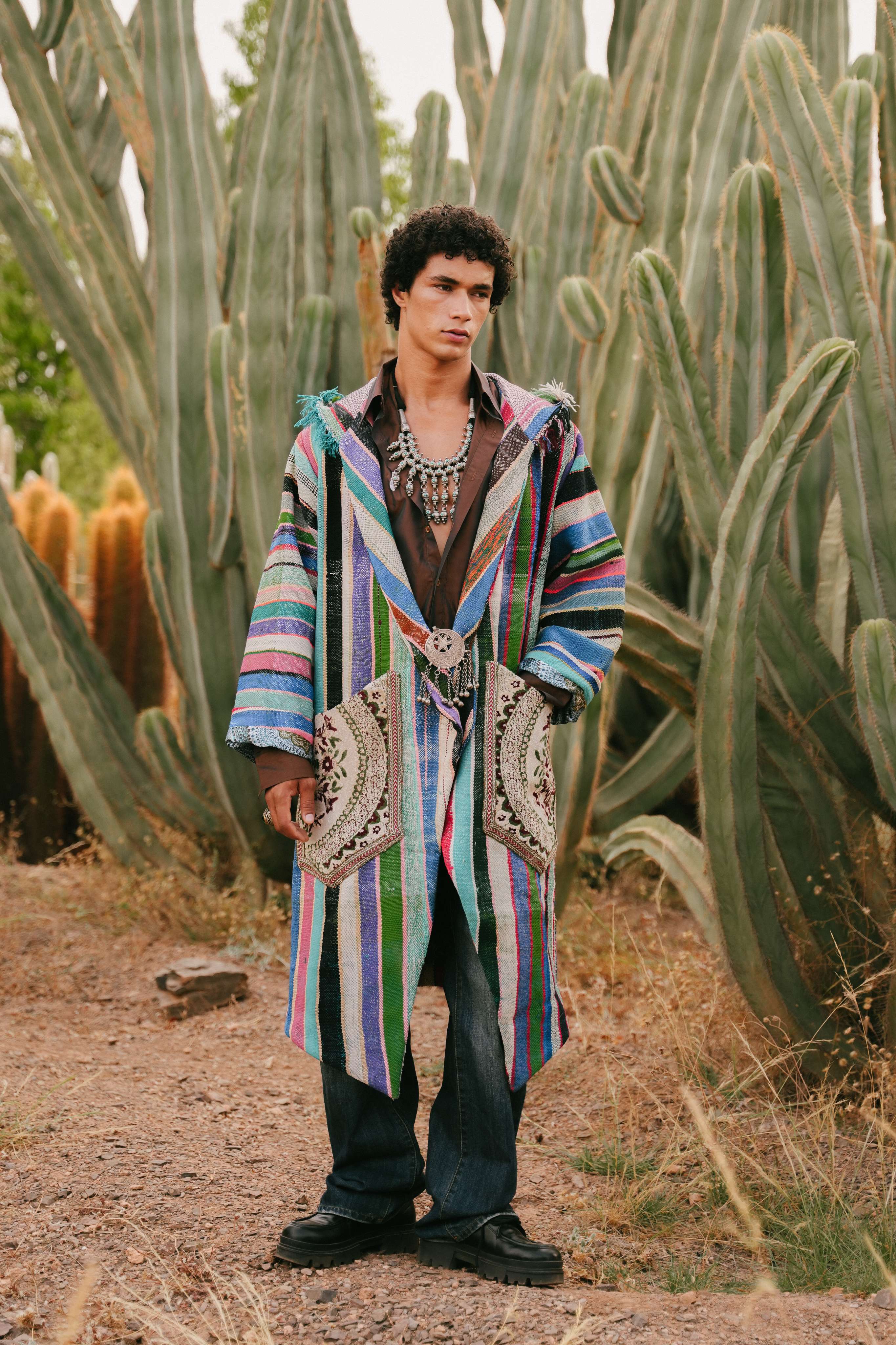 A wearable landscape of vibrant color and rustic texture, this coat is a tribute to the wild beauty of the desert.