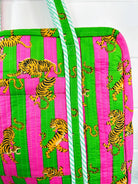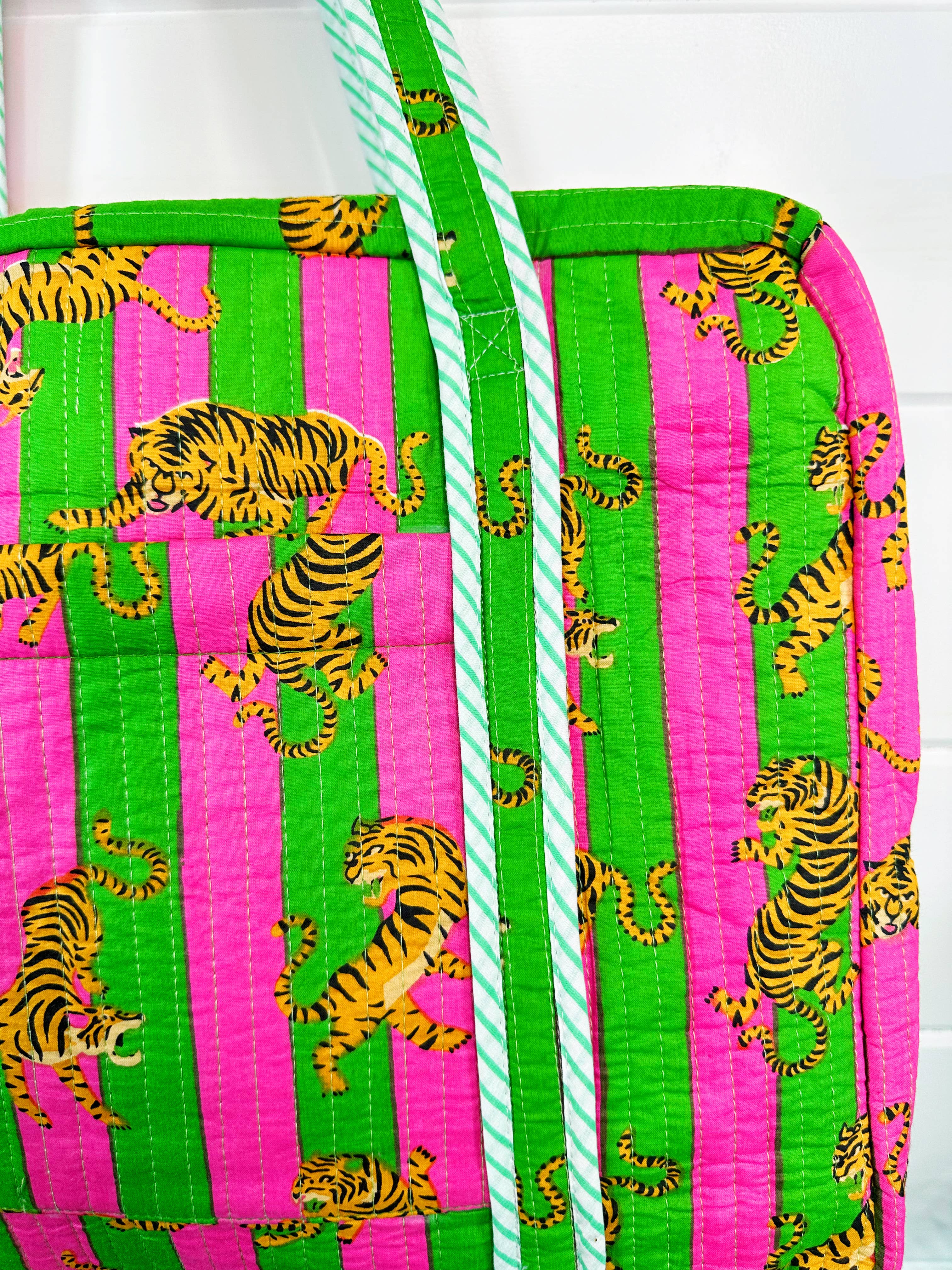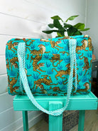 Each bag is meticulously handmade in small batches by skilled Indian artisans, ensuring that your purchase is one-of-a-kind. Due to the artisanal nature of the production, prints may vary slightly, adding to the uniqueness of your bag. The dimensions of 19" x 14.5" provide ample space for all your essentials, while the exterior zipper pocket and secure zipper top closure keep your belongings safe and easily accessible.