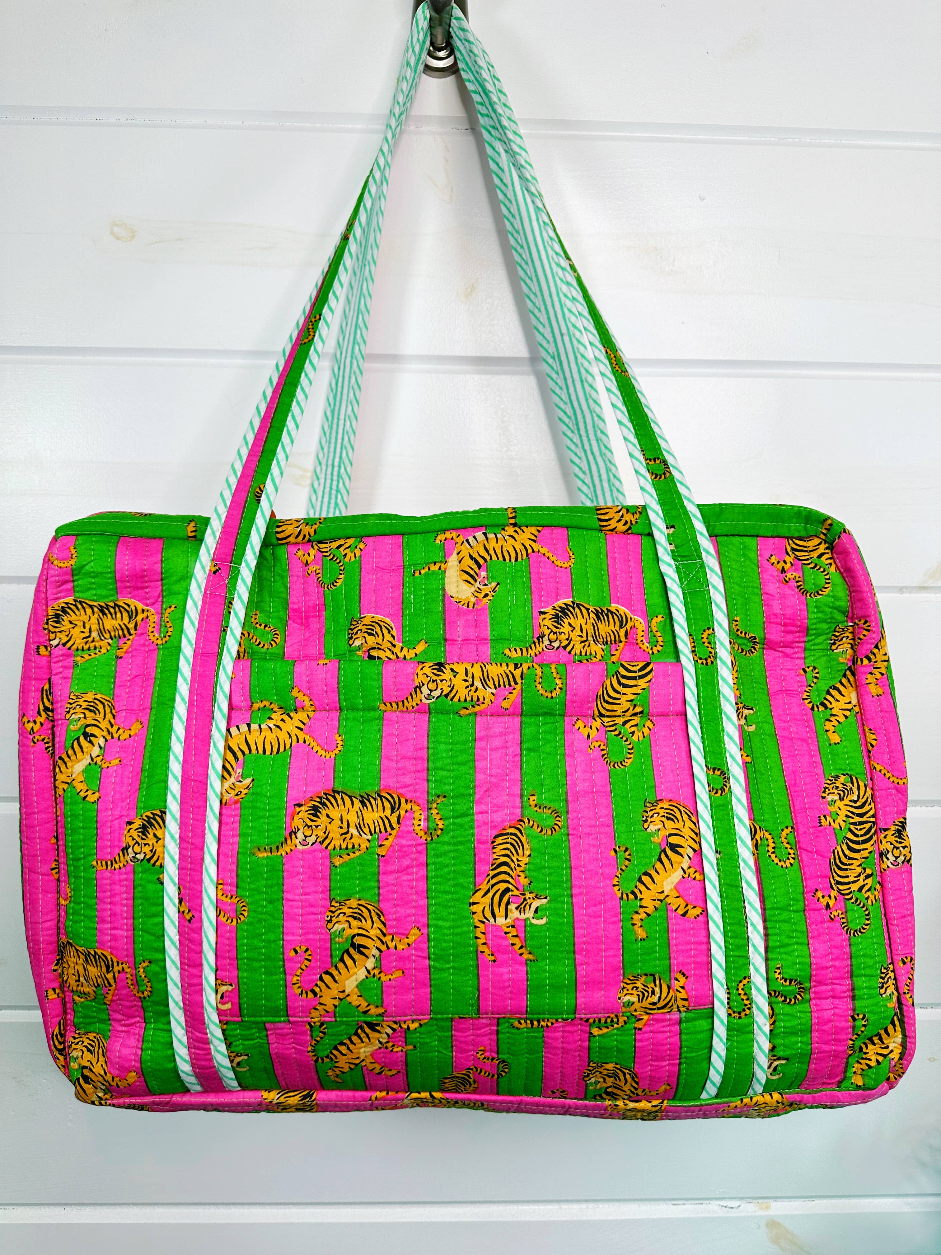 Discover the perfect travel companion with our Handmade Quilted Duffle Bag, designed for style and functionality. Ideal for weekend getaways, overnight trips, or gym sessions, this spacious bag is crafted from 100% cotton featuring a stunning hand block print that showcases unique designs. With contrasting trim and interior, it’s not just a bag; it’s a statement piece.