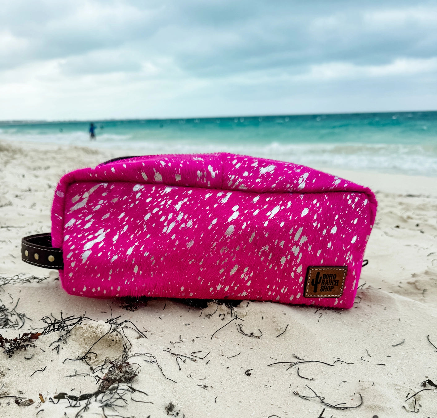 Vibrant Pink & Silver Cowhide: Crafted from genuine hair-on cowhide dyed a brilliant, shocking pink and splashed with shimmering silver flecks, each bag is a completely one-of-a-kind statement piece with a rich, tactile feel.