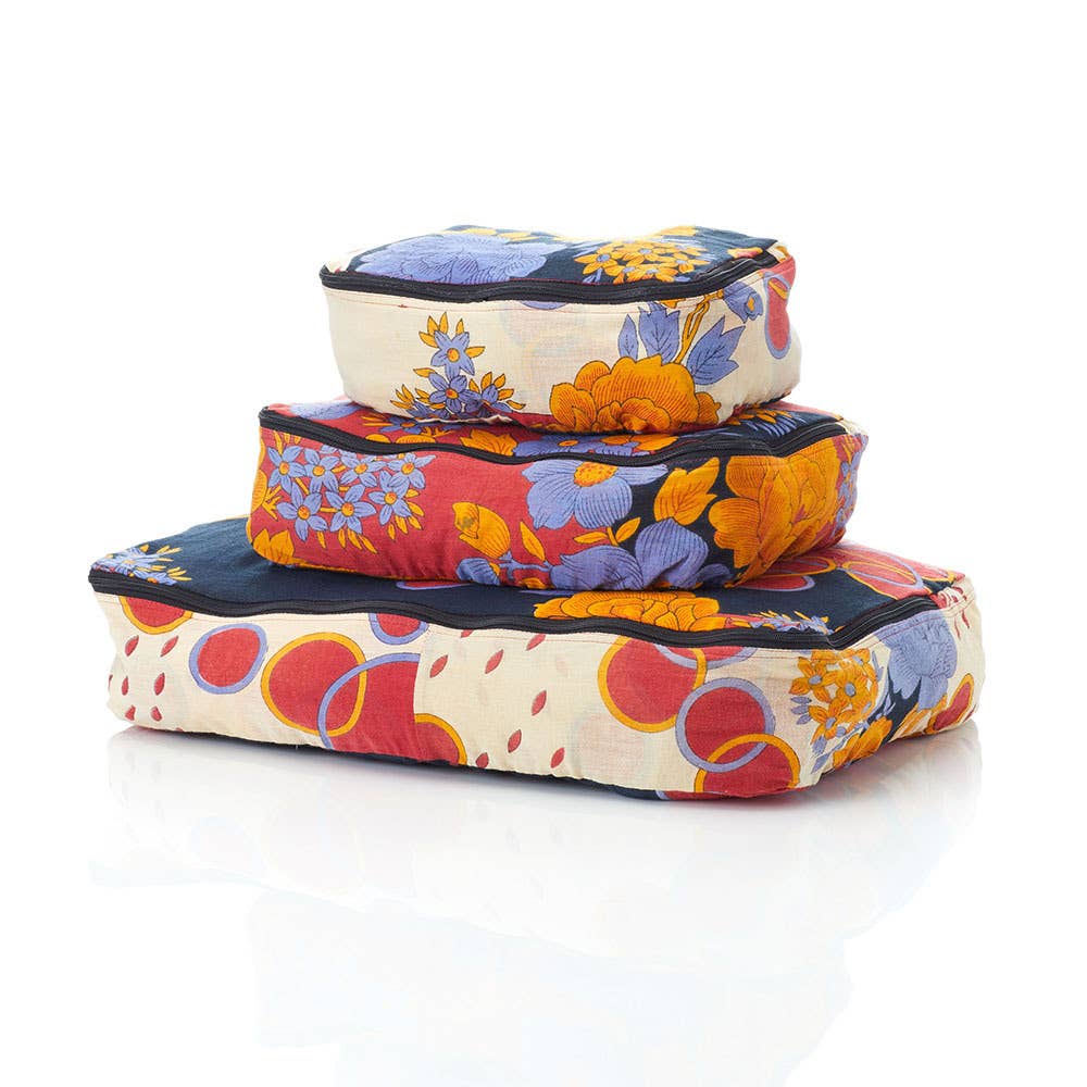 Style Notes: The ultimate solution for the artful traveler. These cubes make organizing your suitcase a joy and are perfect for separating clean clothes from laundry on your return. They also make a thoughtful and unique gift for the fellow wanderer in your life. Please embrace the serendipity of the handmade process; the patterns and colors shown are examples, but your set will be a unique work of art.