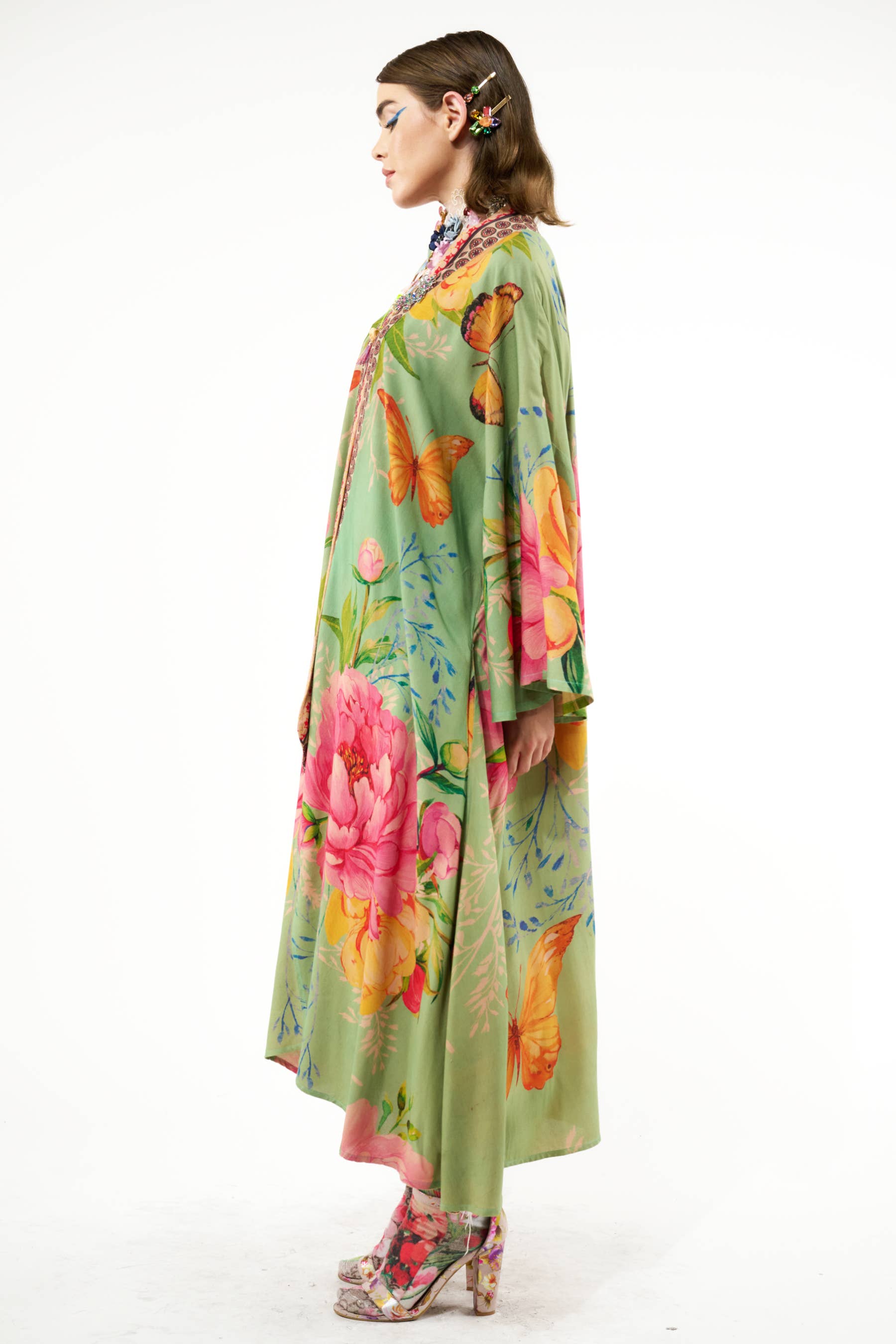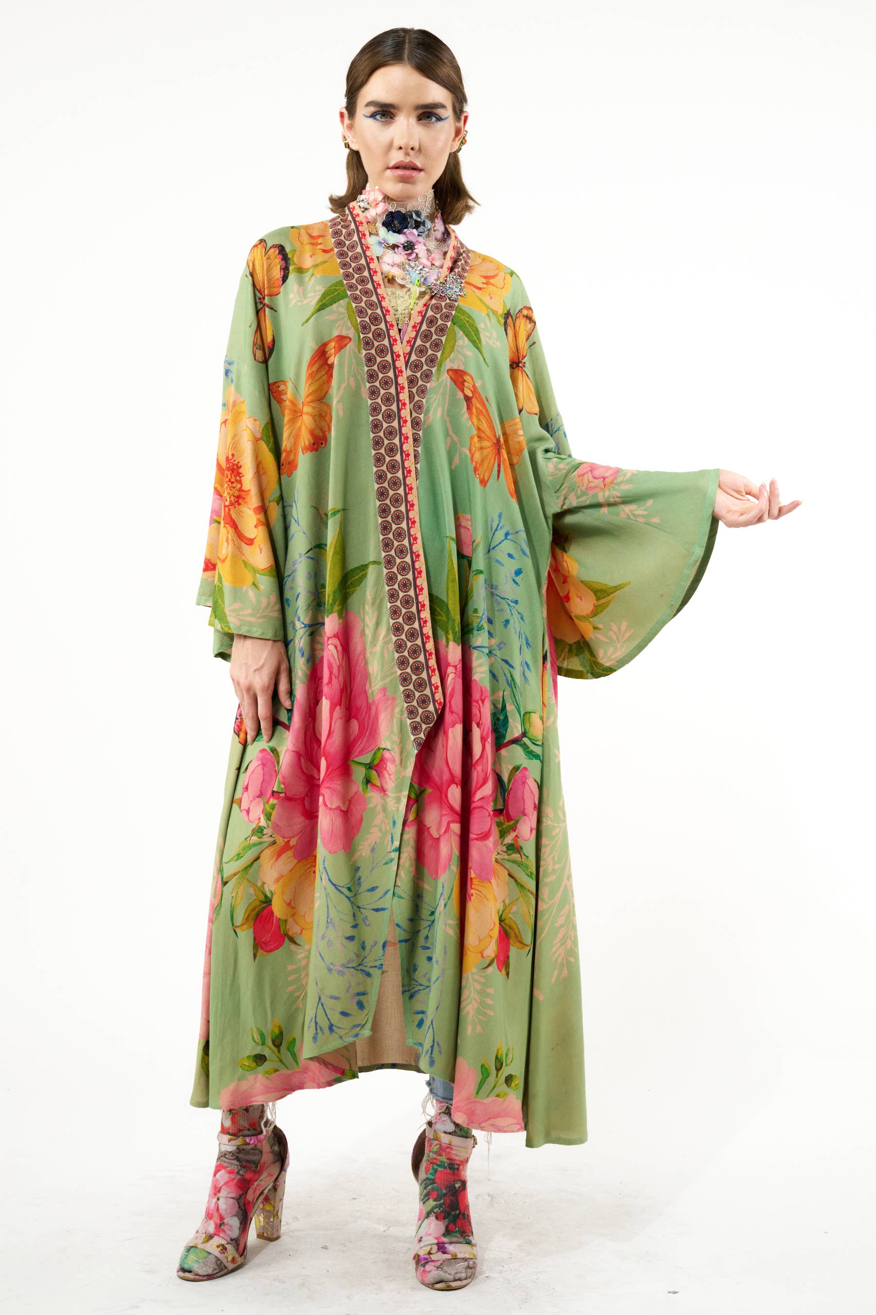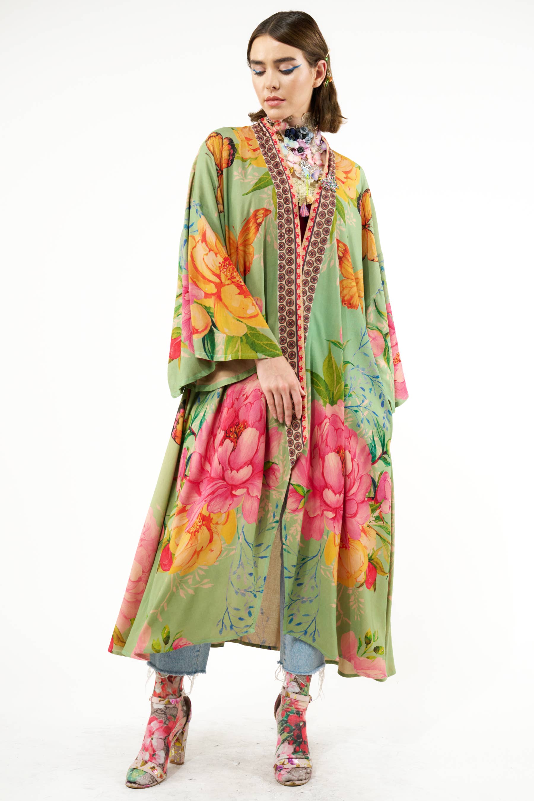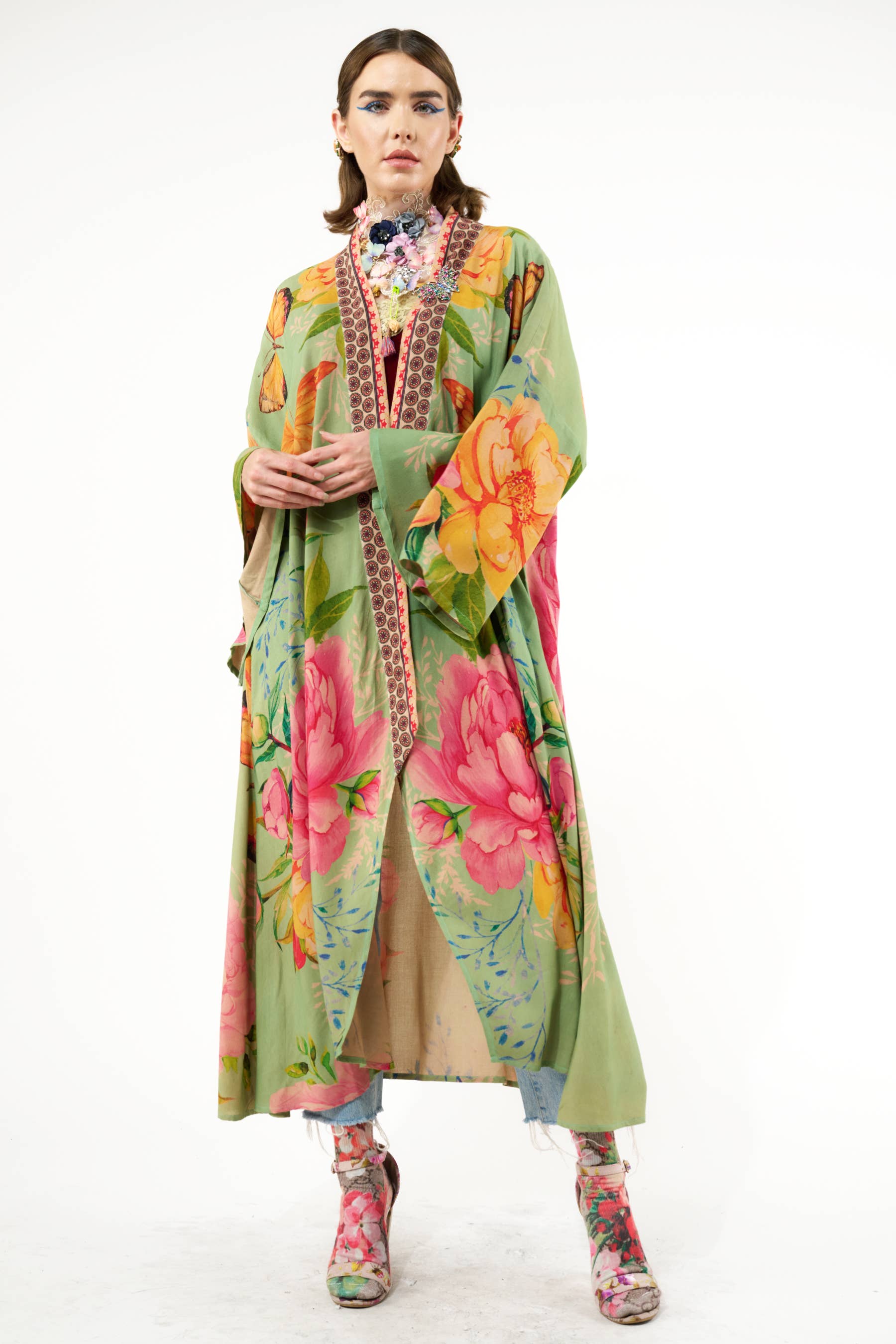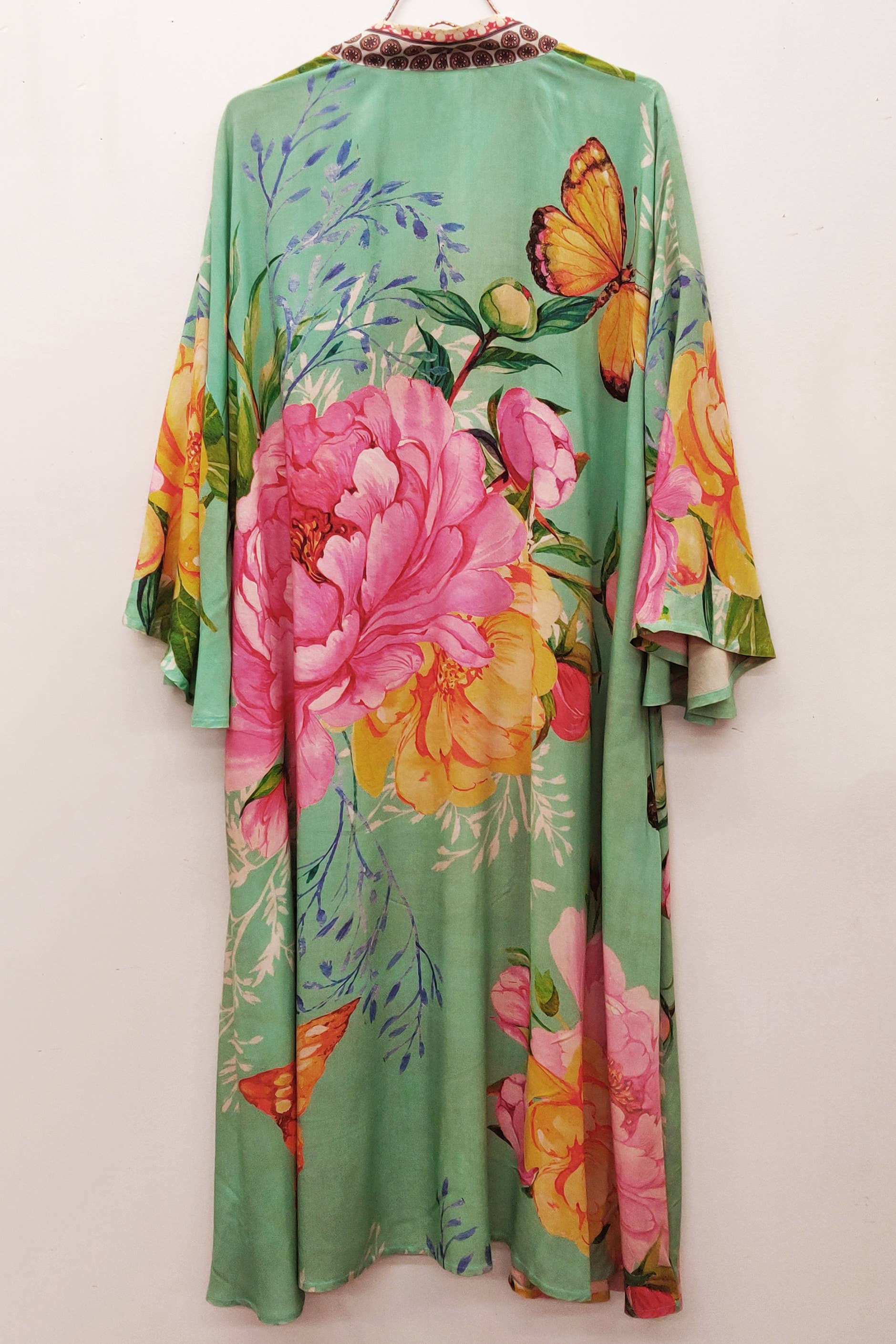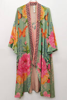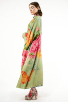 The Osaka Kimono captures a lush, botanical dreamscape, available in two mesmerizing distinct artistic narratives. Whether you choose the soft whimsy of the Sage Green or the regal drama of the Emerald, each piece feels less like a cover-up and more like a wearable masterpiece. Inspired by the eclectic energy of its namesake and the softness of vintage heirlooms, these kimonos feature breathable, silky fabric that moves with you. Imagine the cool touch of viscose against your skin as you move through the world with color and confidence.