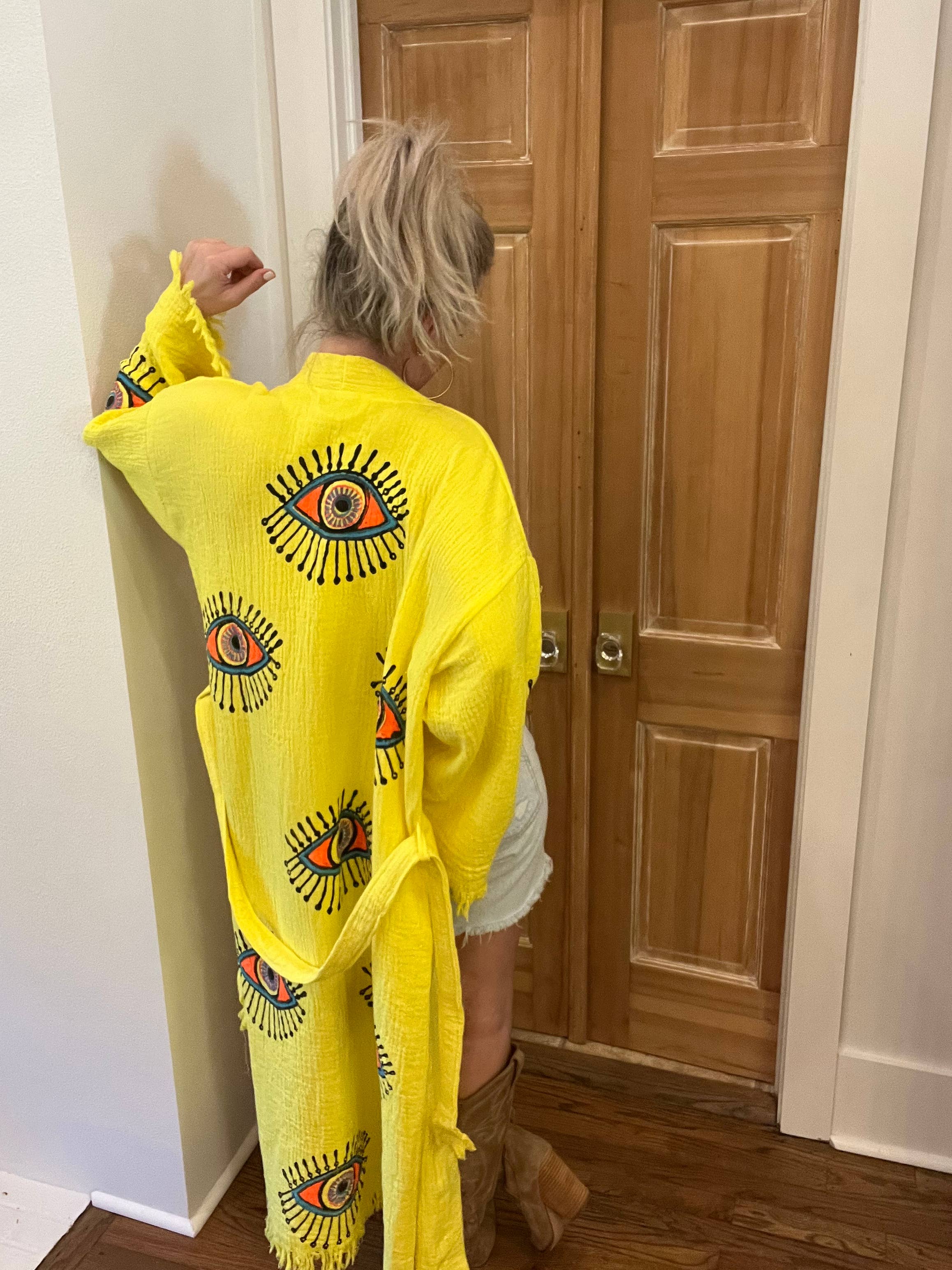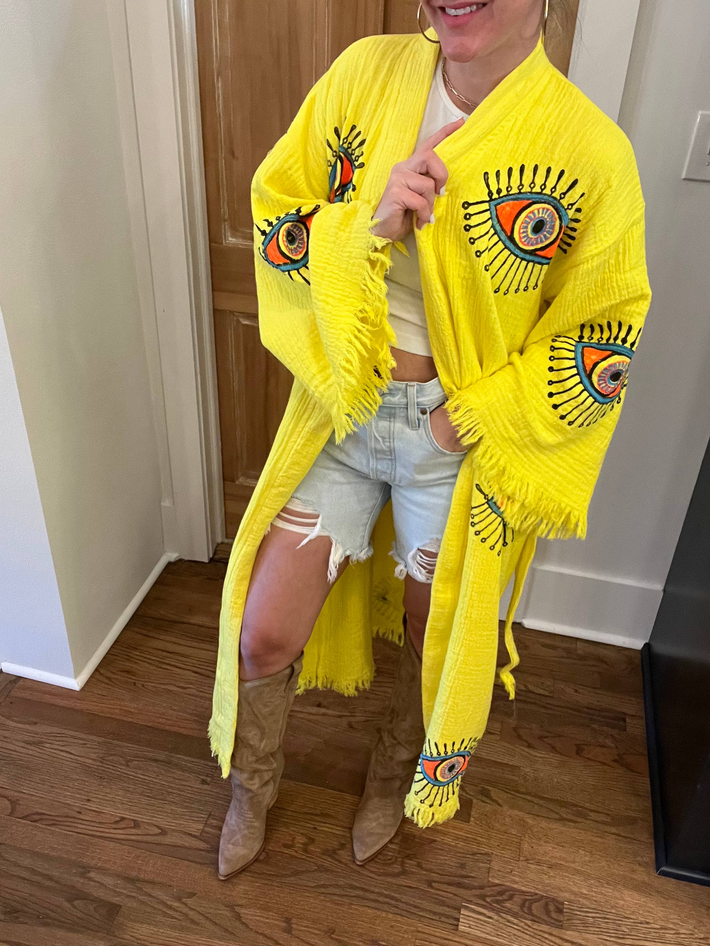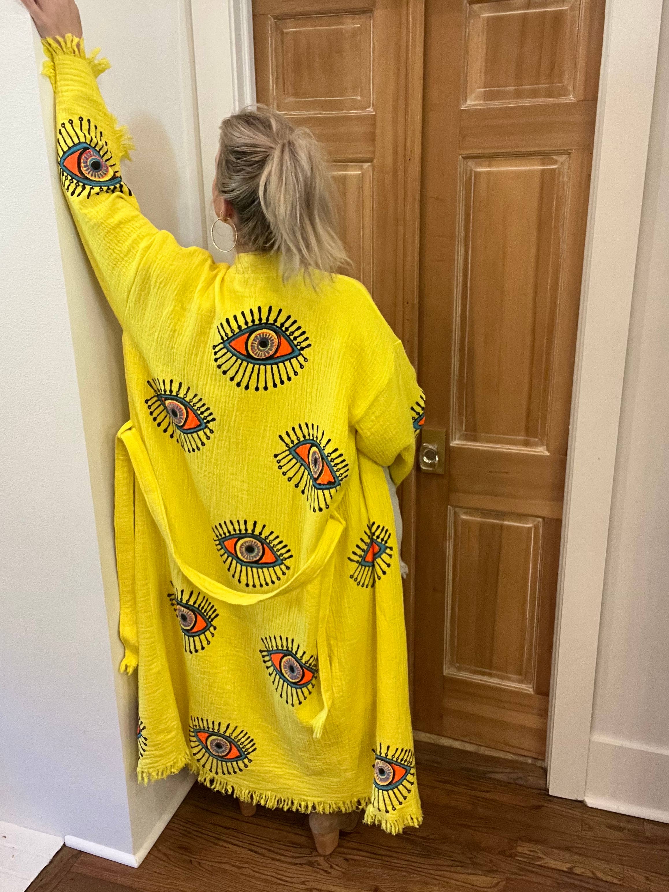 Why dry off with a boring towel when you can dry off with art? The Bright Eyes Sarong Towel is the ultimate beach multitasker, designed for the traveler who demands "Main Character Energy" from every item in their suitcase. Made from 100% organic cotton, this isn't a printed factory piece—it features hand-painted Evil Eye motifs that serve as spiritual sunscreen against bad vibes. Whether you choose the electric Hot Pink, the cool Turquoise, or the chic Neutral or Cobalt, you’re getting a quick-drying masterpiece that screams dopamine dressing.
