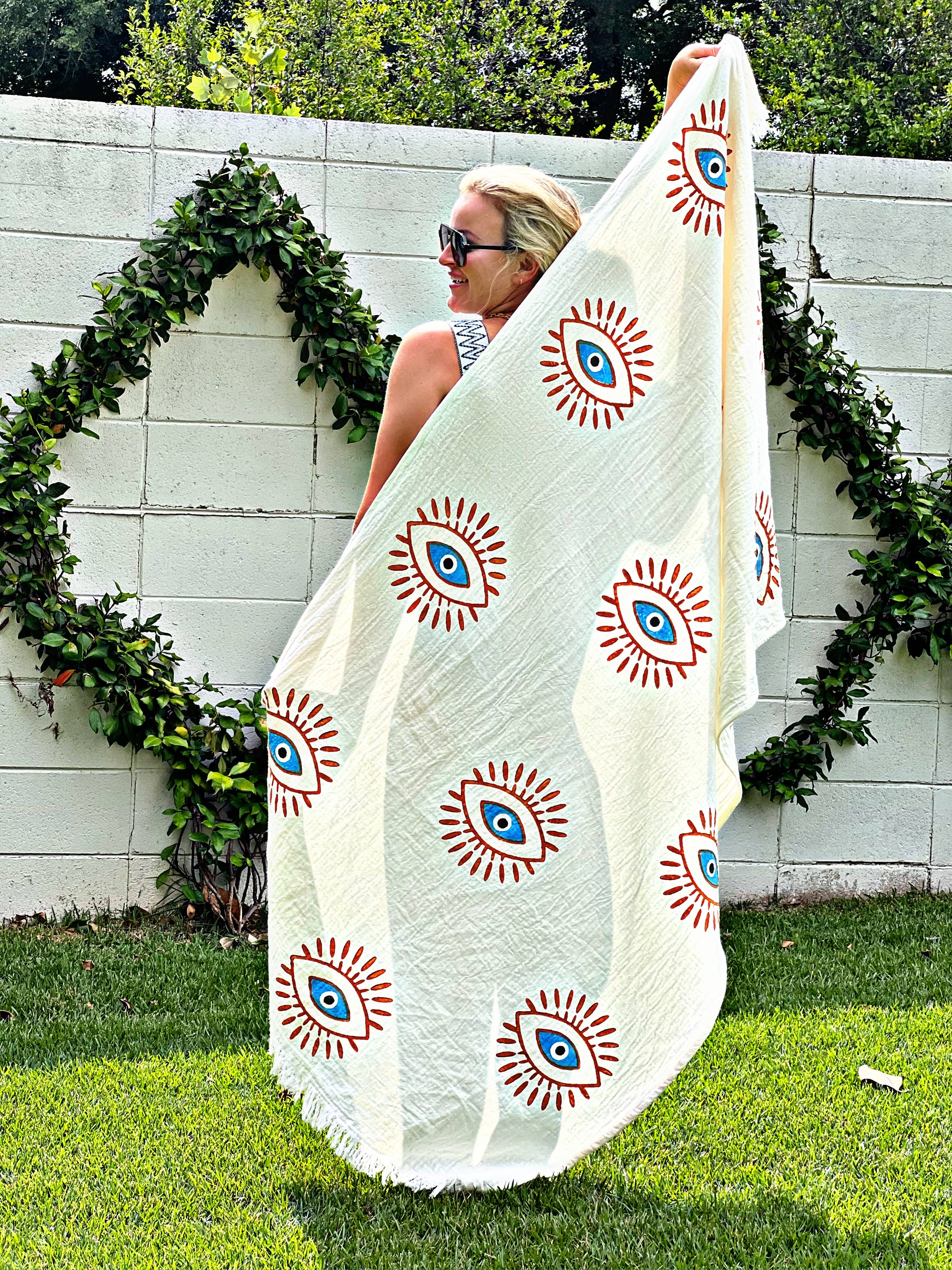 - Hand-Painted Artistry: Each towel is individually hand-painted with bold, protective Evil Eye designs, meaning your towel is literally one-of-a-kind (just like you).