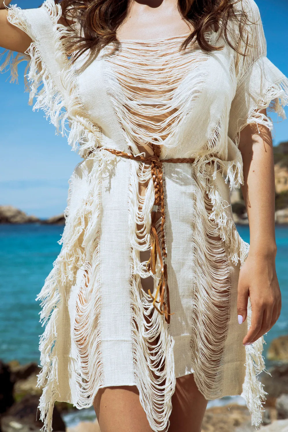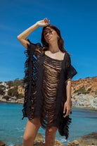 Embrace the "undone" aesthetic by layering this textural wonder over a sleek, monochromatic bikini to let the intricate shredding take center stage. For a transition to the beach club, pair it with distressed denim cut-offs and leather gladiator sandals. It is a statement piece that requires confidence, not accessories.