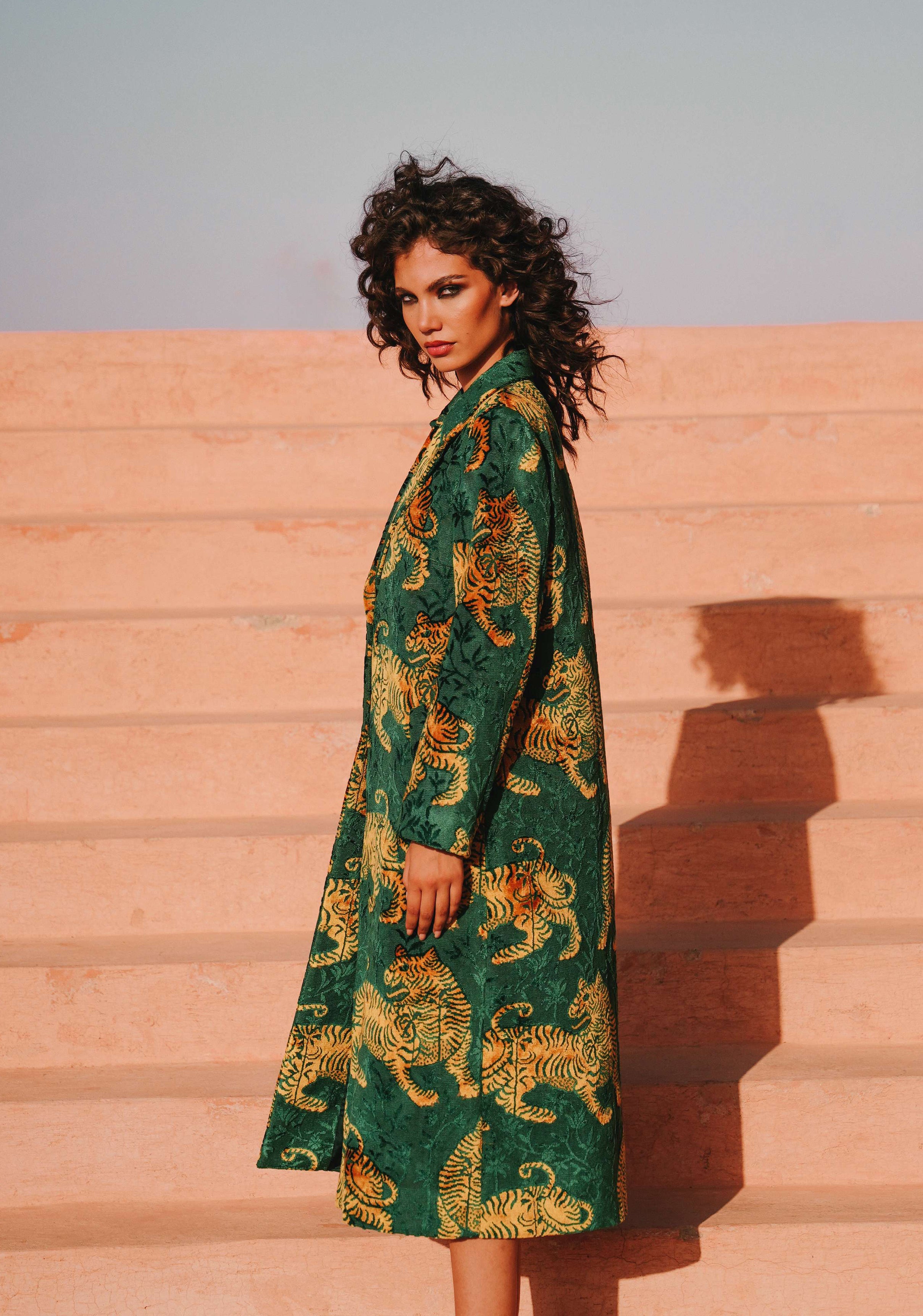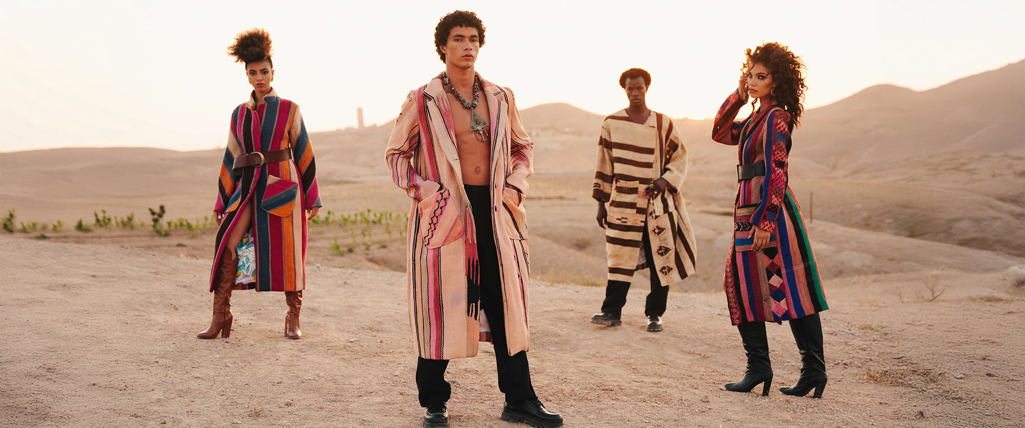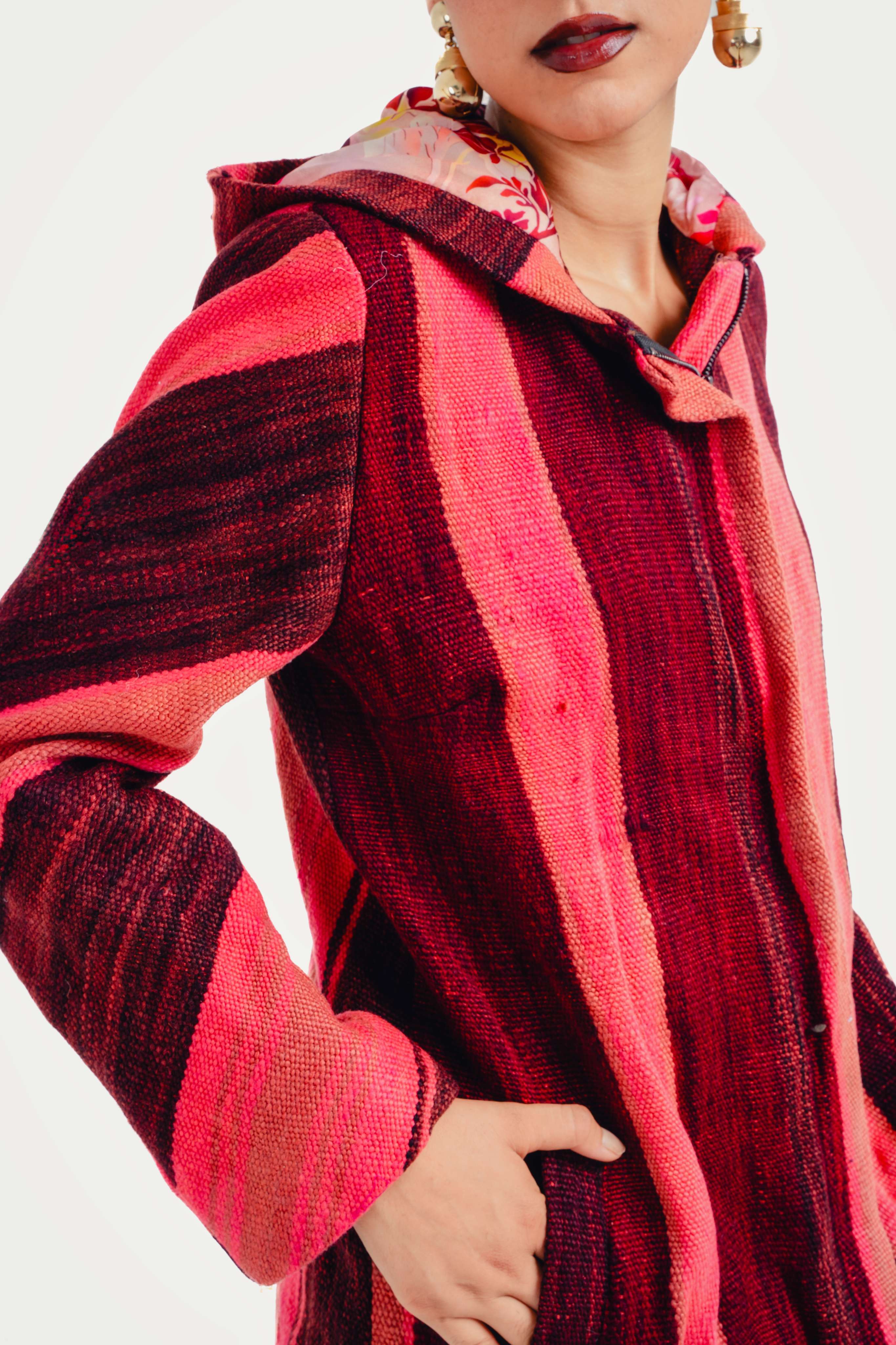 When we discovered these handwoven treasures in the Medinas of Marrakech and the Saharan edges of Morocco, we knew these textiles held stories too powerful to stay hidden. With deep respect, we collaborated with local artisans and expert tailors to transform each piece into wearable art, living memory maps passed down, cherished, and redesigned with purpose. No two coats are alike, each tells a different tale, and you become part of that story the moment you wear it. Be ready to share it!