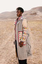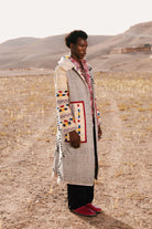 Journey to the heart of Fez, a city where ancient artistry breathes in every archway and alley. This coat is inspired by the splendor of a Moroccan moussem, a traditional festival filled with vibrant color, texture, and generational skill. It’s a collector's piece, a wearable tapestry that tells a story of celebration. Handcrafted in Morocco, every stitch, tassel, and sequin is a testament to the artisan's hand, creating a garment that feels both timeless and spectacularly alive.