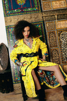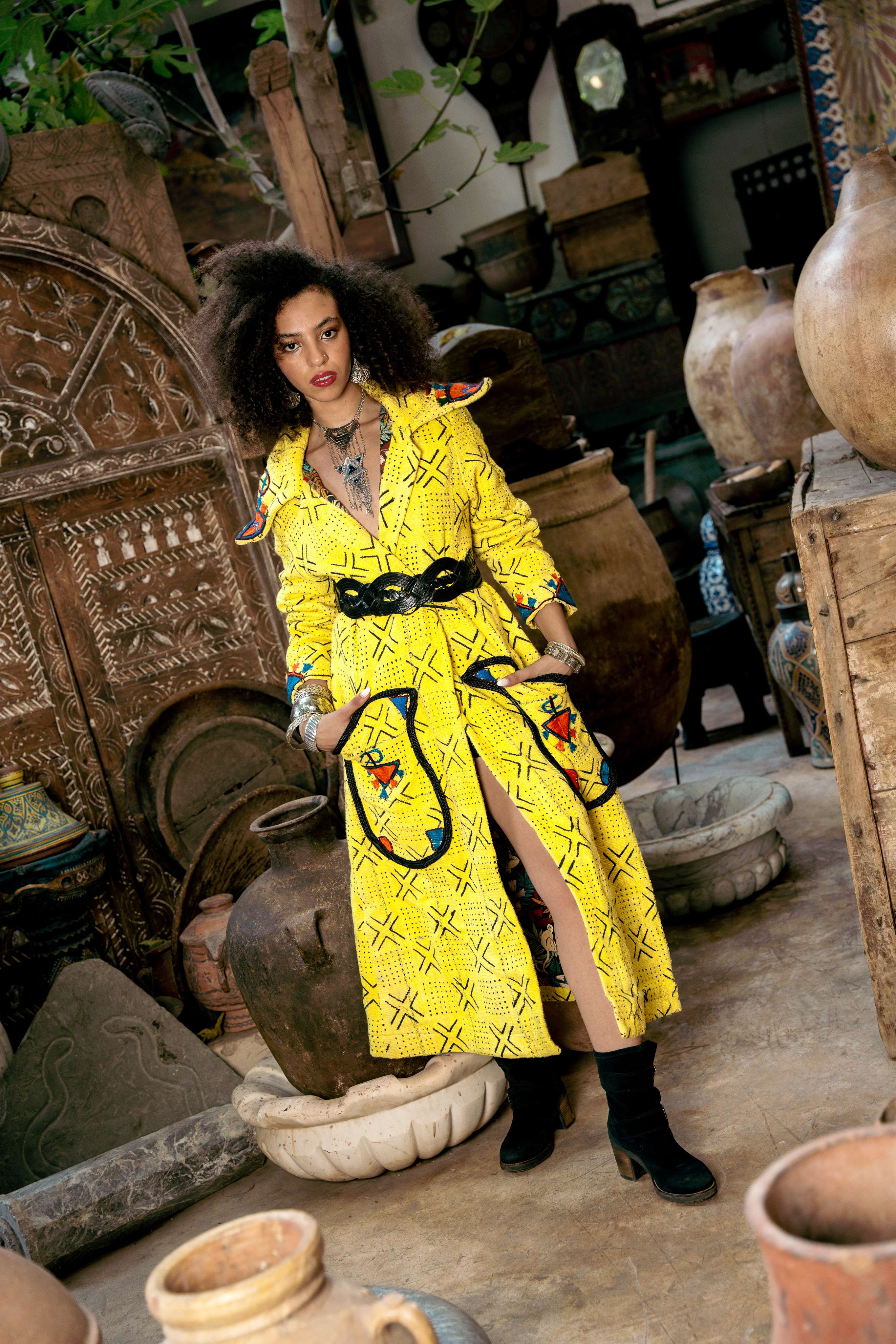 Embrace the radiant warmth of a Moroccan sunset in a coat that's a true piece of wearable art, designed for the Wanderlusty Woman.