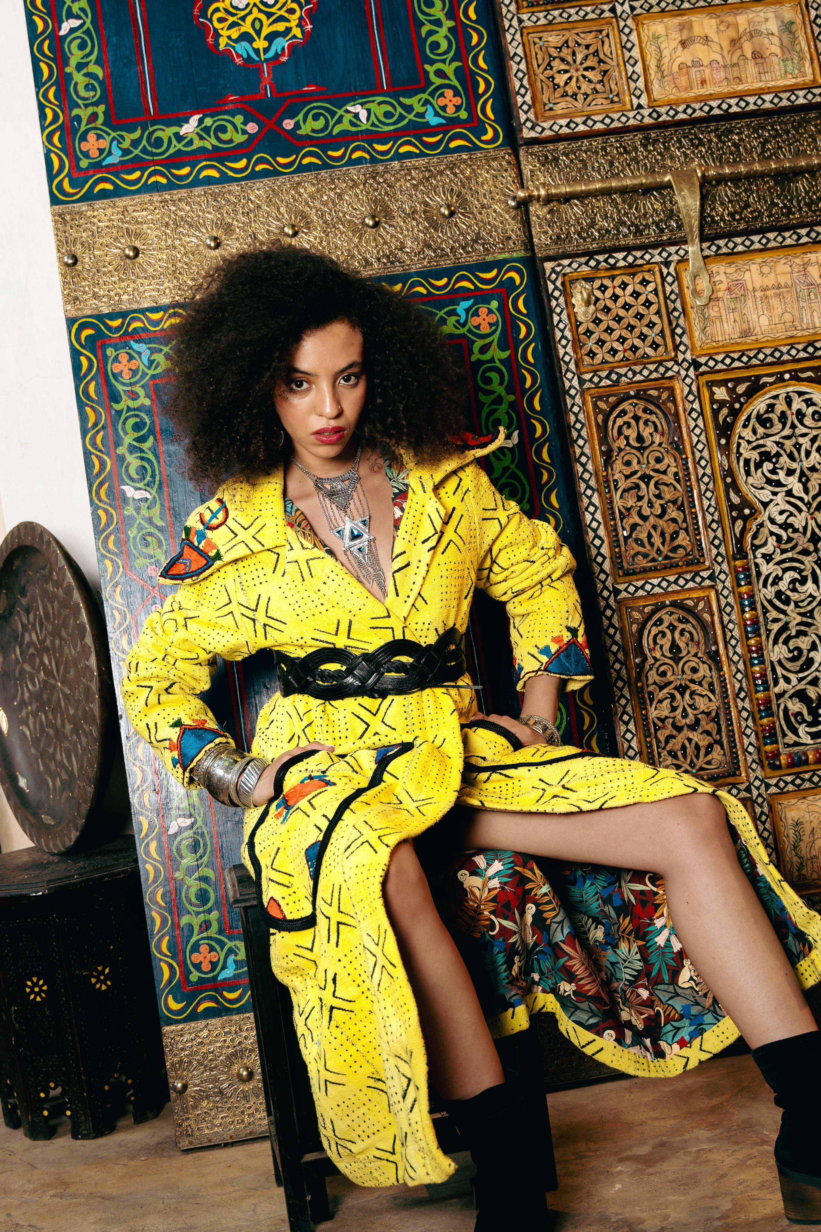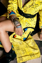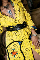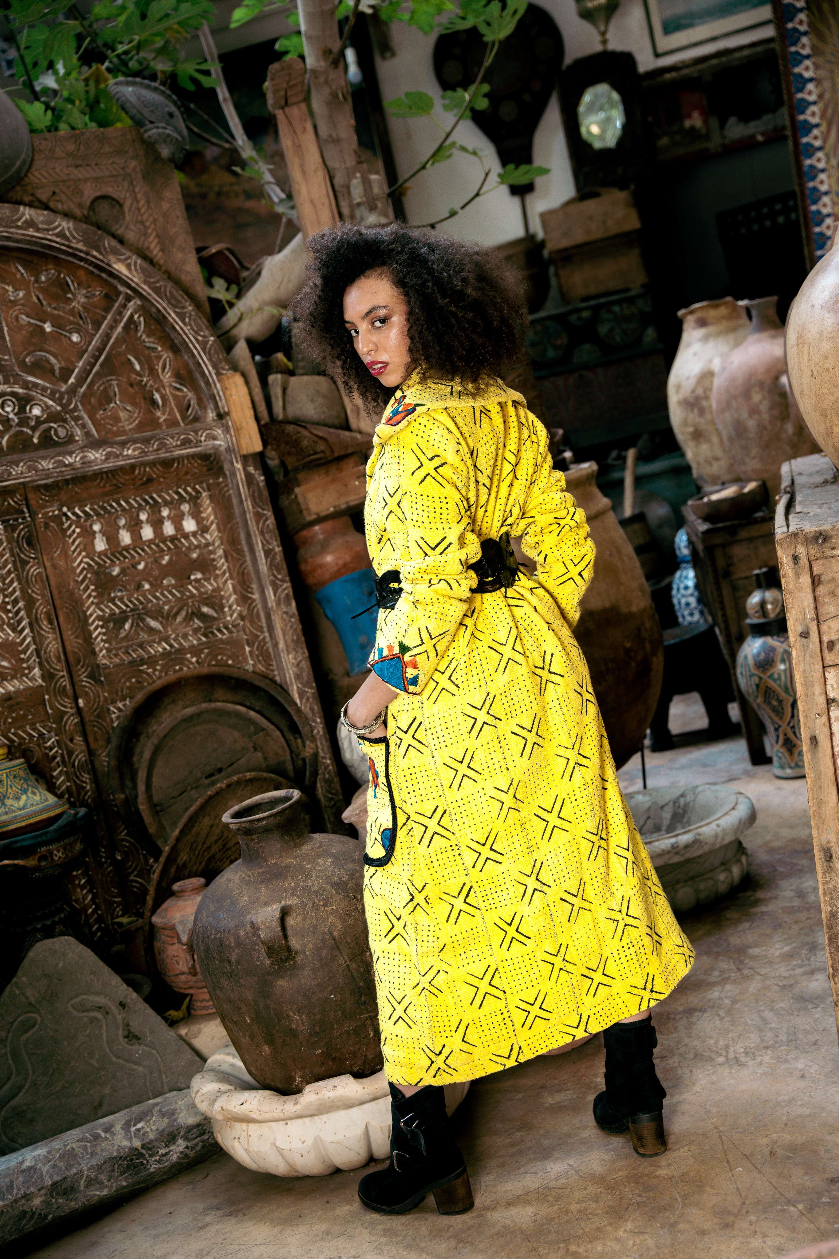 As the sun dips below the Marrakech skyline, casting a warm, golden glow across the terracotta rooftops, the world is bathed in a magical light. This is the golden hour, and this coat is its embodiment. The bold, geometric patterns are a tribute to the ancient art of West African Bògòlanfini, or mudcloth—a powerful form of storytelling through textiles. Handcrafted by our artisan partners in Morocco, this piece represents a beautiful fusion of pan-African design and North African craftsmanship, created for the one who collects stories and wears them with pride.