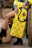 - Sun-Drenched Palette: A vibrant, golden yellow base provides a brilliant canvas for a contrasting, graphic black pattern, accented with fiery red and cobalt blue embroidery.