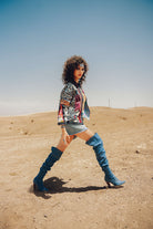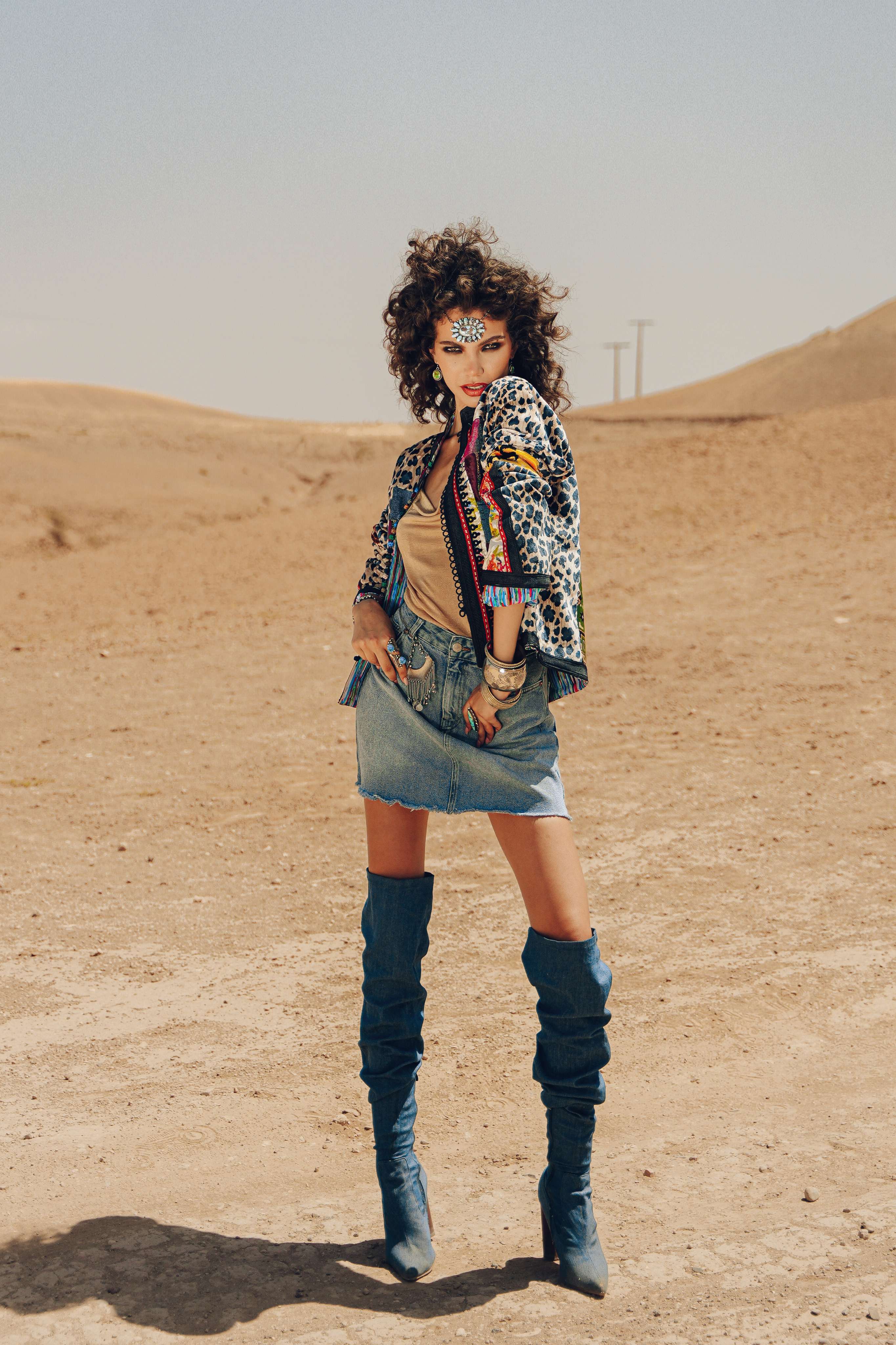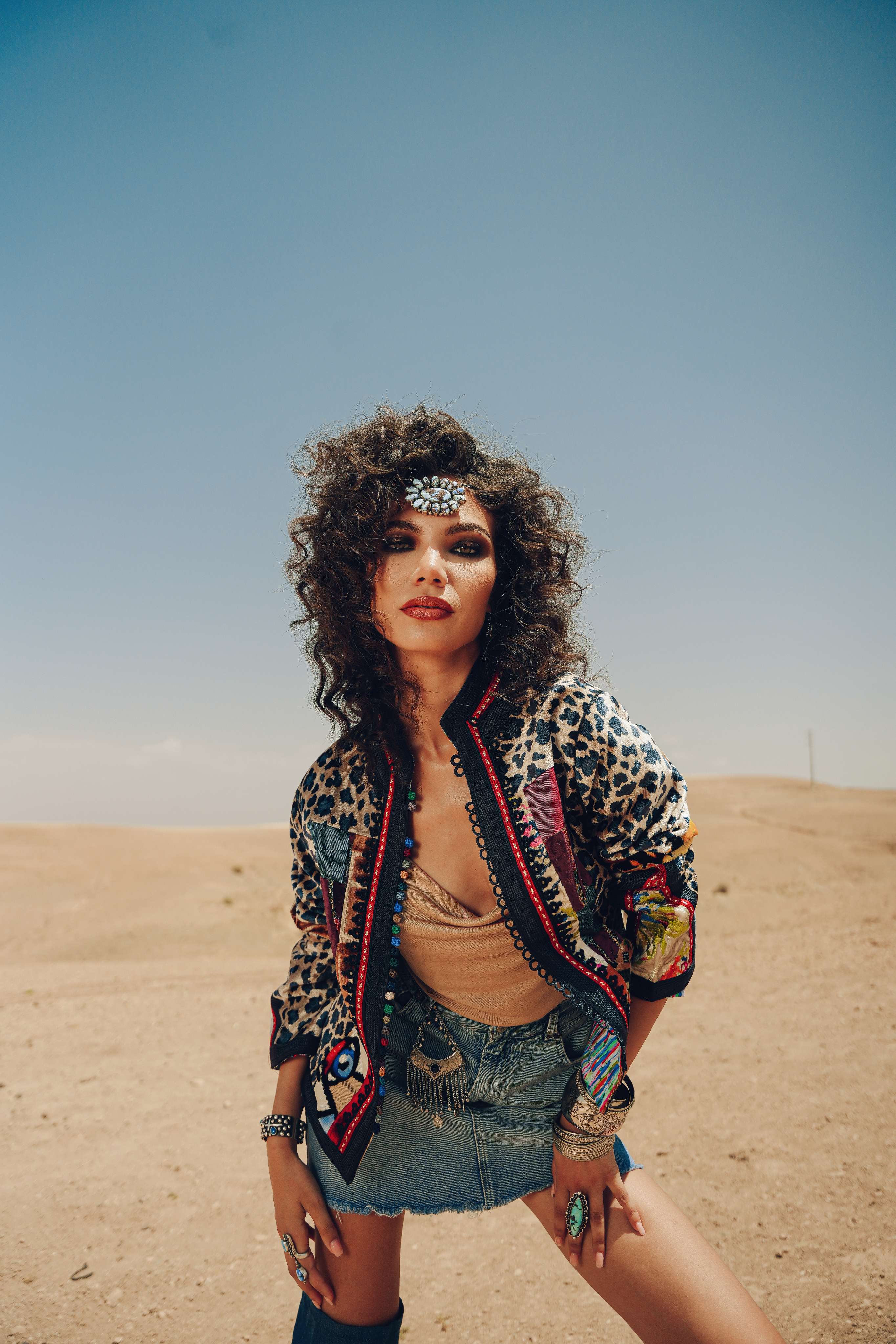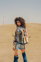 Enter a waking dream of Morocco, where the sights and sounds of the souks and the spirit of the wild Atlas mountains collide in a vibrant vision. The Lioness Bomber jacket is this dream made real. Handcrafted in Morocco, it’s a surrealist collage of textures and patterns—leopard print for wildness, intricate beading for souk treasures, and bold colors for the dye pits of Fez. This is not just a jacket; it's a wearable fantasy for the bold, creative soul.
