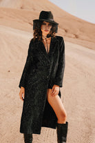 Channel the bold styling from our photoshoot by wearing this trench as a standalone evening piece with knee-high boots and dramatic accessories. For a more understated yet equally chic look, layer it over a black slip dress or tailored trousers to let its unique texture shine.