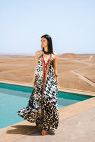 The Wander Far Silk Maxi Dress is the ultimate travel companion for the woman whose heart belongs to the horizon. Crafted from 100% ethereal silk, it packs down to a whisper, ready to unfurl at a moment’s notice in Phuket, Tuscany, or Marbella. Whether draped in the coral hues of the "Carins" or the wild, animal-print elegance of "Florence," this dress offers a sensation of pure freedom, moving fluidly from sun-drenched decks to candlelit dinners.