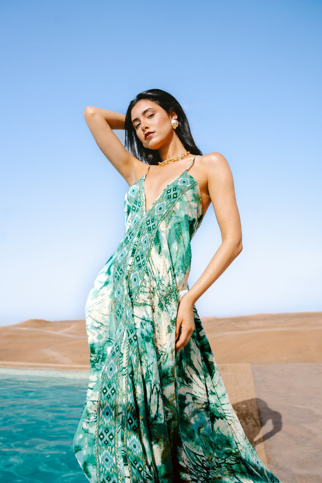 This piece is designed for the "Roam Ready" traveler. Wear it over a bikini for a luxurious upgrade at the beach club, or let it stand alone with metallic strappy sandals for a night out. Its beauty lies in its movement, so keep accessories minimal to let the print speak.