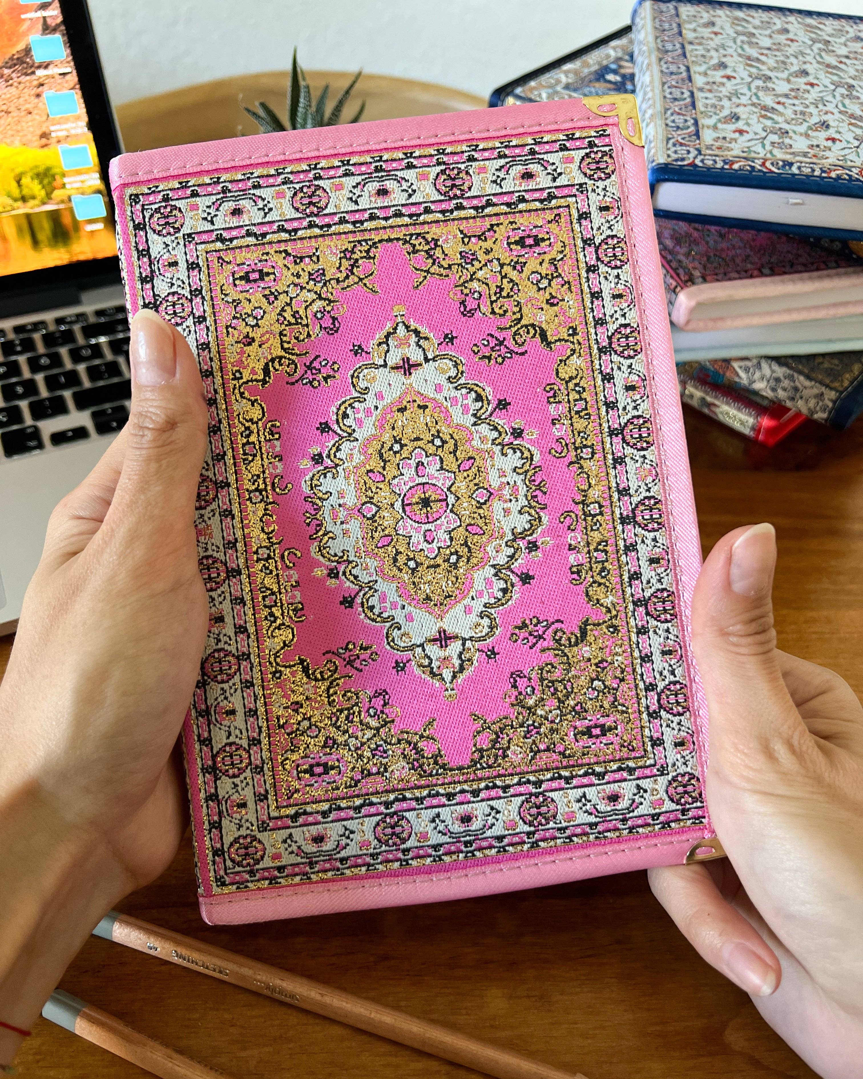 Style Notes: The perfect companion for slow travel. Keep it on your bedside table to capture morning thoughts, or tuck it into your bag for an afternoon spent writing in a sun-drenched café. It's a beautiful, tangible home for your innermost reflections and adventures. As each journal features a unique carpet design, the one you receive will be a one-of-a-kind treasure.